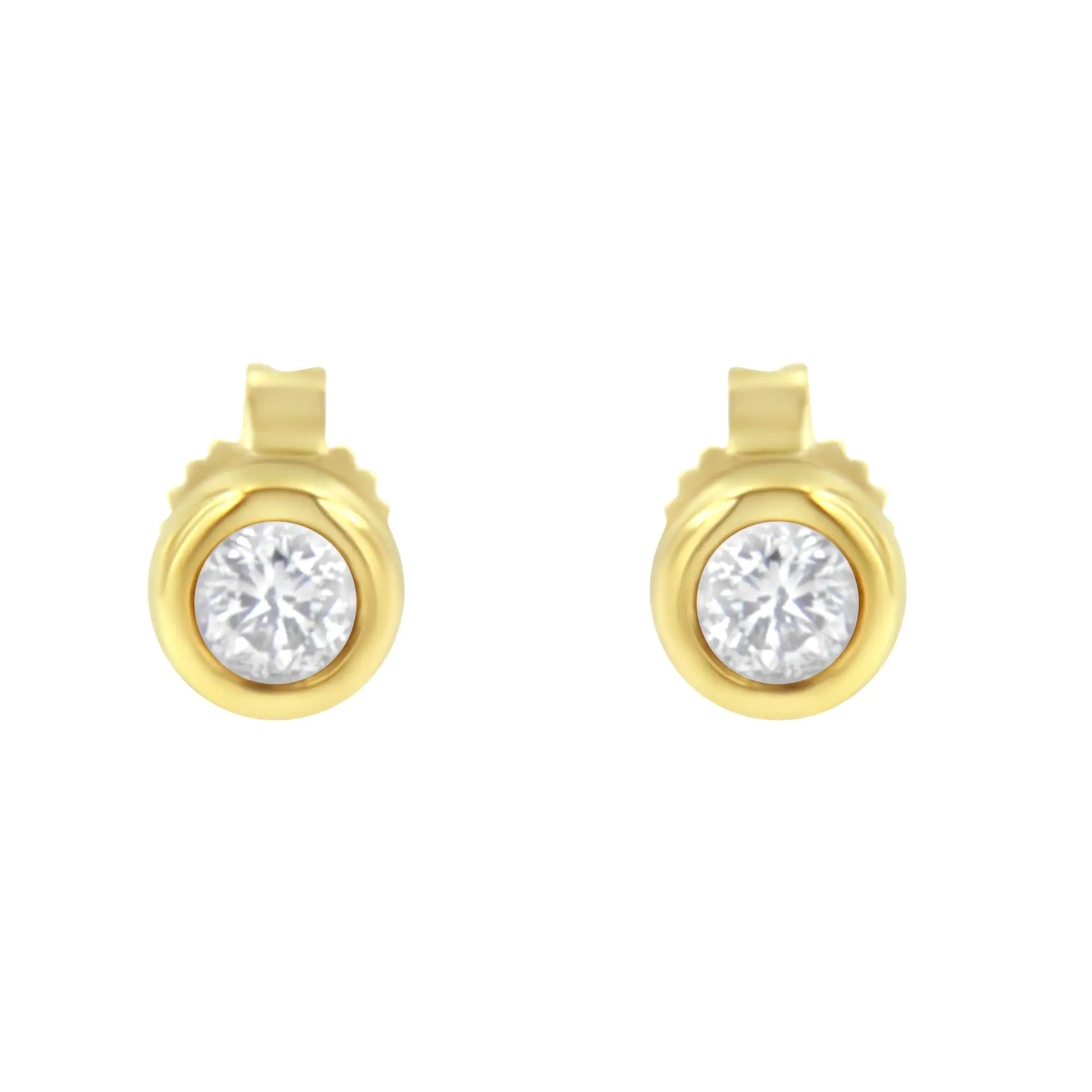 10K Gold 1/4 Cttw Round Brilliant-Cut Near Colorless Diamond Bezel-Set Stud Earrings (H-I Color, I1-I2 Clarity)