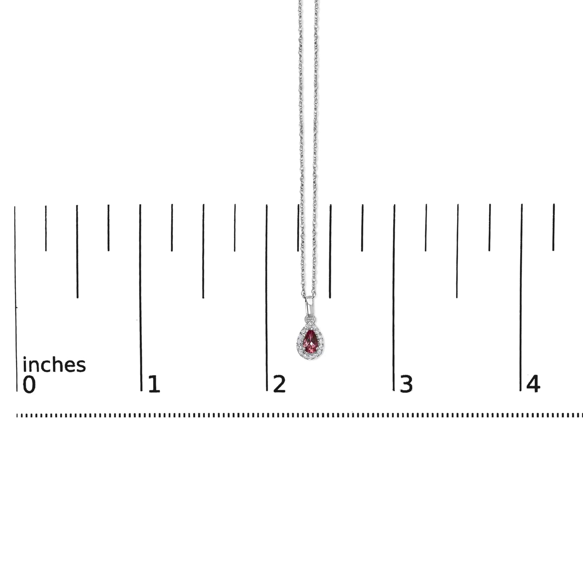 10K White Gold 5x3mm Gemstone and Diamond Accent Halo Pear Shape 18" Pendant Necklace (I-J Color, I1-I2 Clarity)