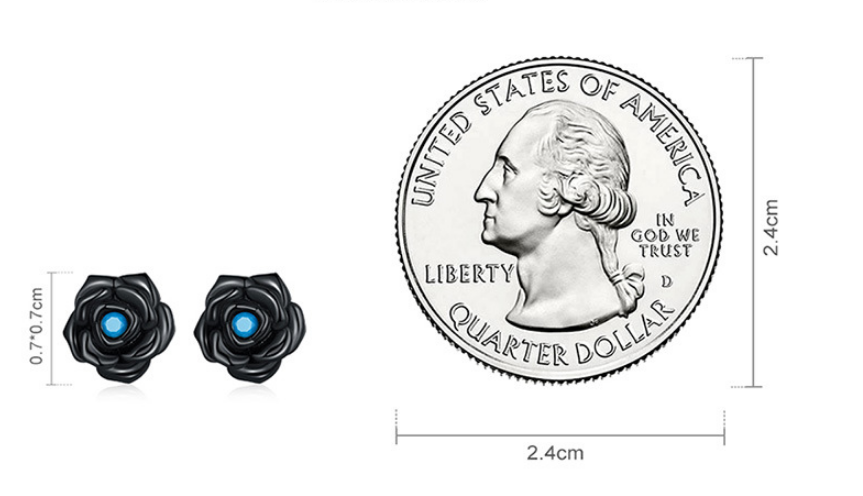 Avelle Original Sterling Silver S925 Black Rose Earrings Simple Black Gold Plated Blue Turquoise Flower Earrings