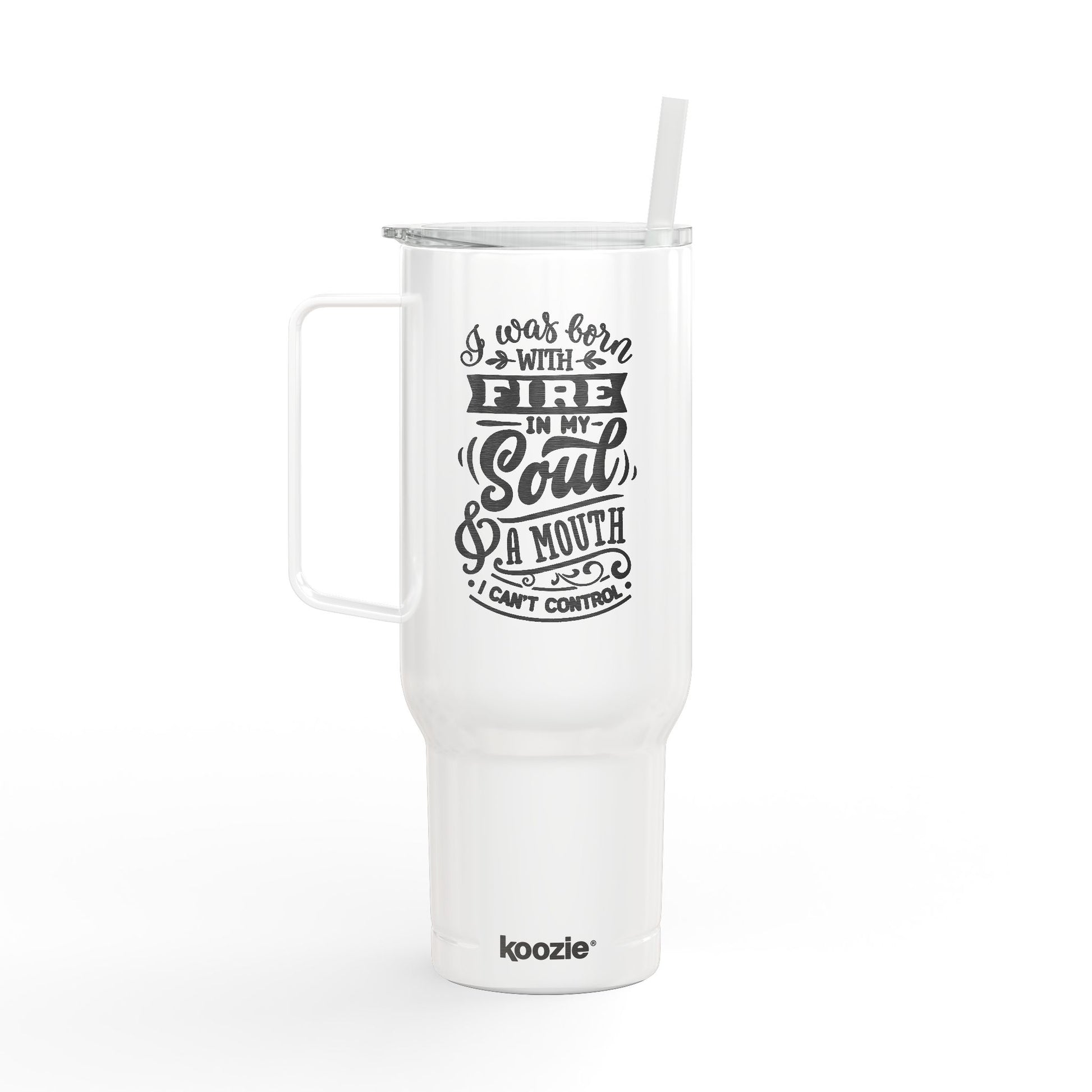 Born with a fire in my soul and a mouth I can't control, Engraved Insulated Tumbler, Custom Travel Mug, 40oz Drinkware, Personalized Gift, Outdoor Adventure Beverage Container
