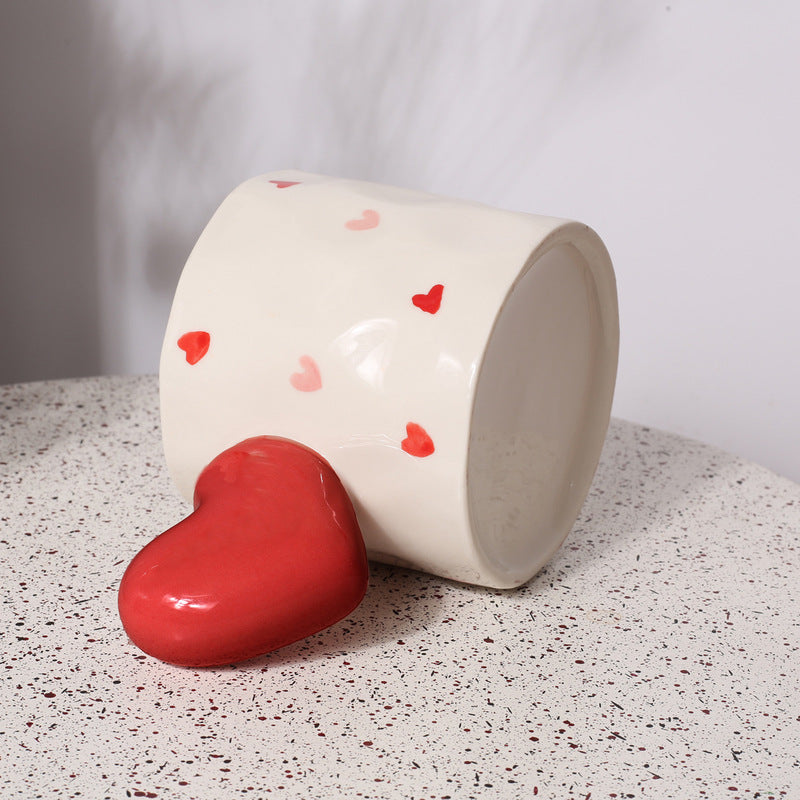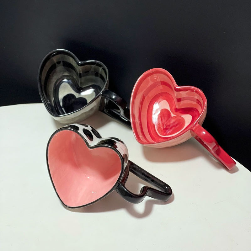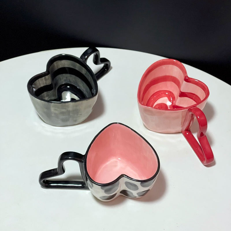 Creative Love Handle Hand-Painted Stripe Love Cow Pattern Ceramic Coffee Cup Hand Held Love Mug