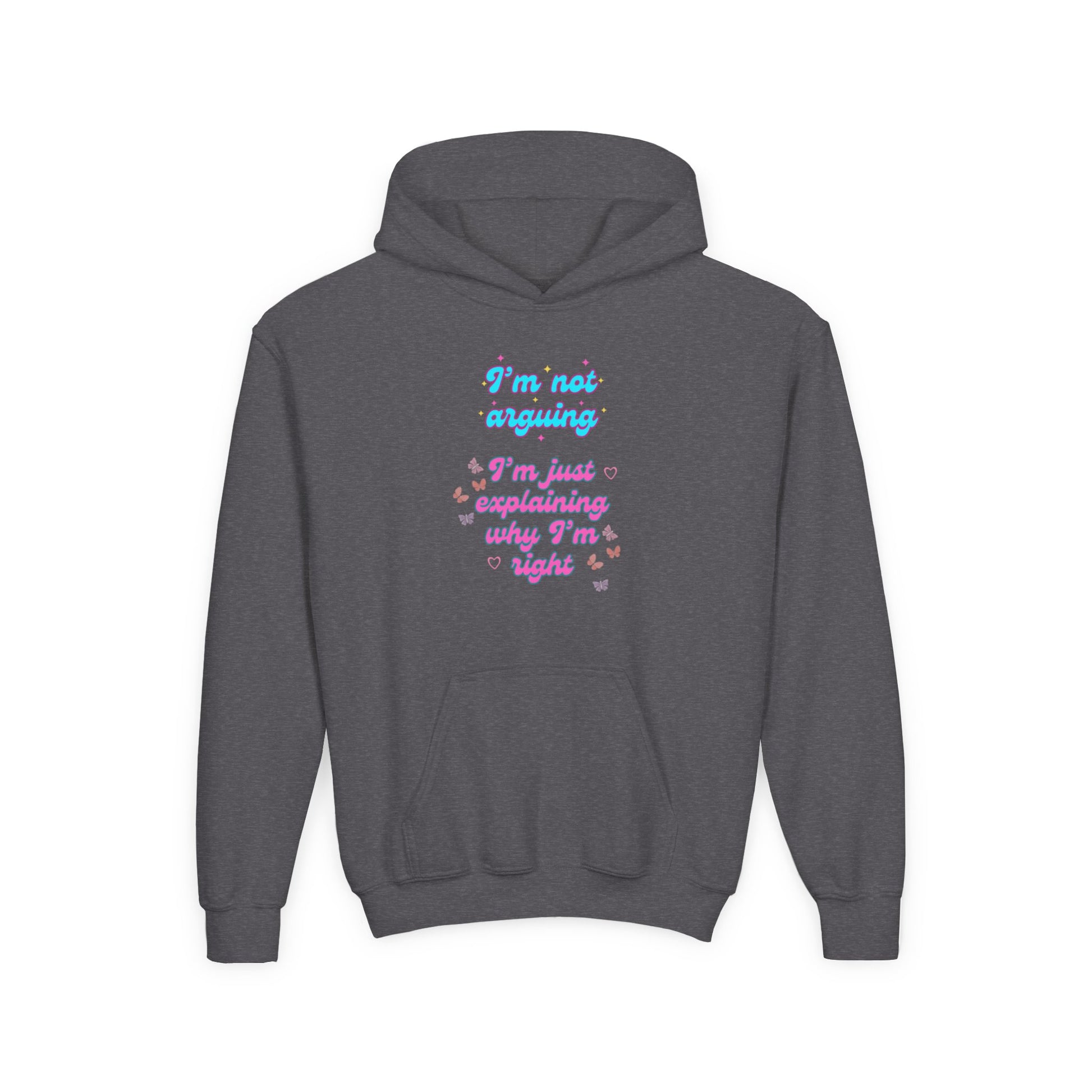 Funny Youth Hoodie - I'm Not Arguing, Just Explaining Why I'm Right | Gift, Casual Wear, Tween Fashion, Birthday, Humor Apparel