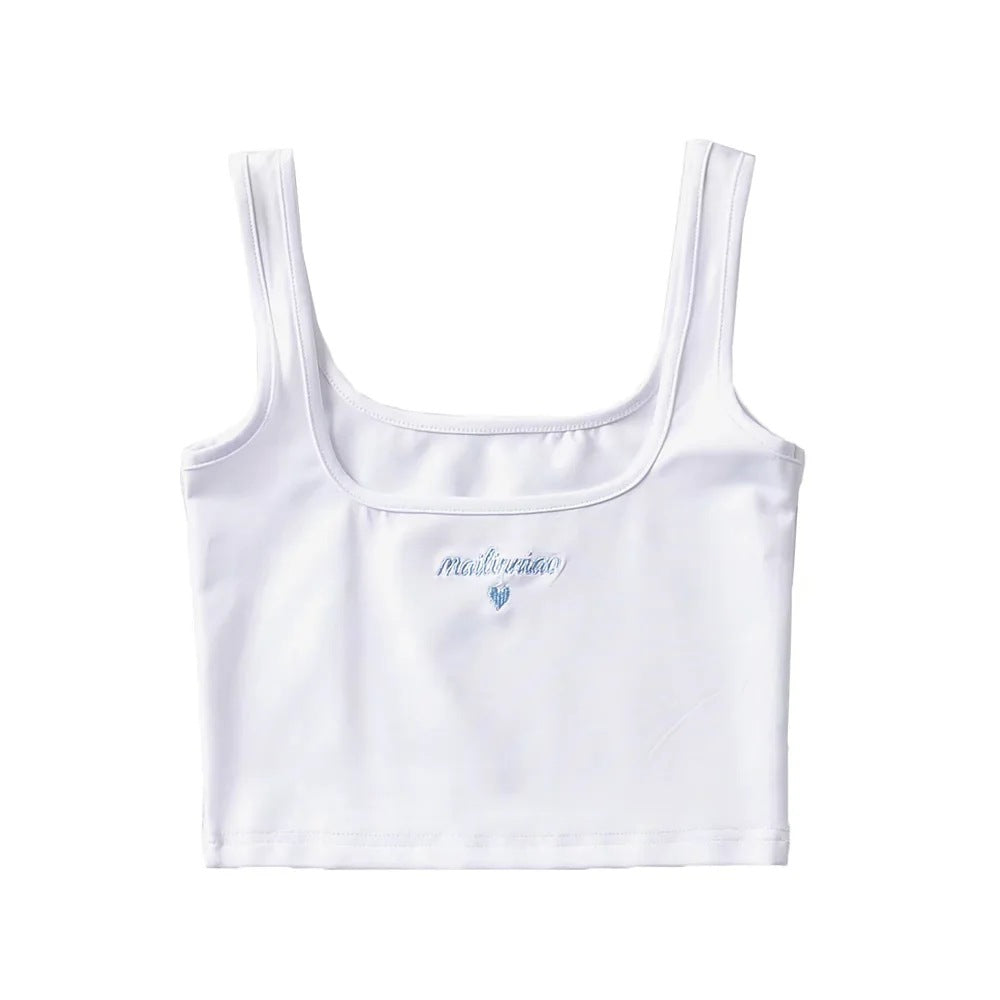 Love Embroidery Square Neck Tank Top