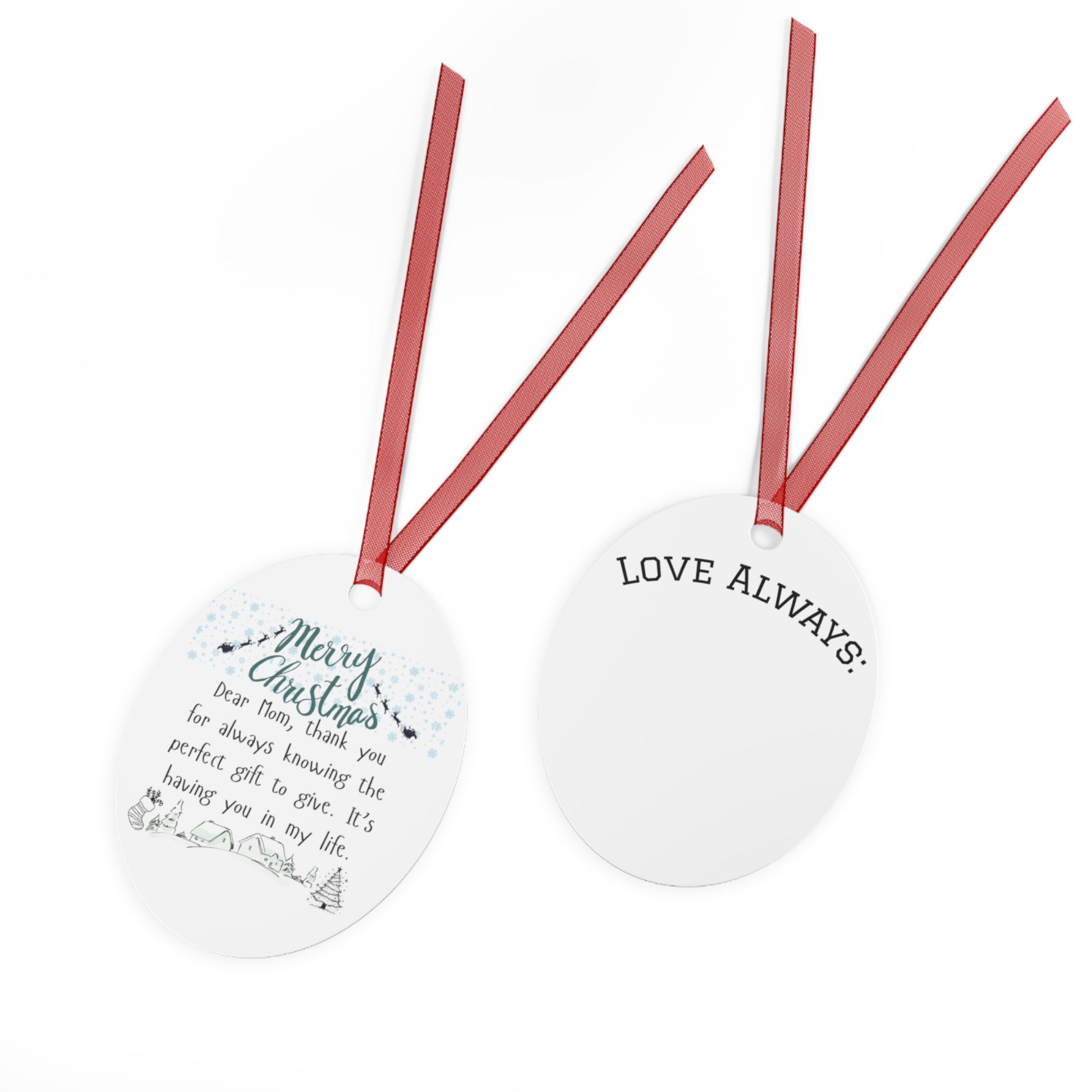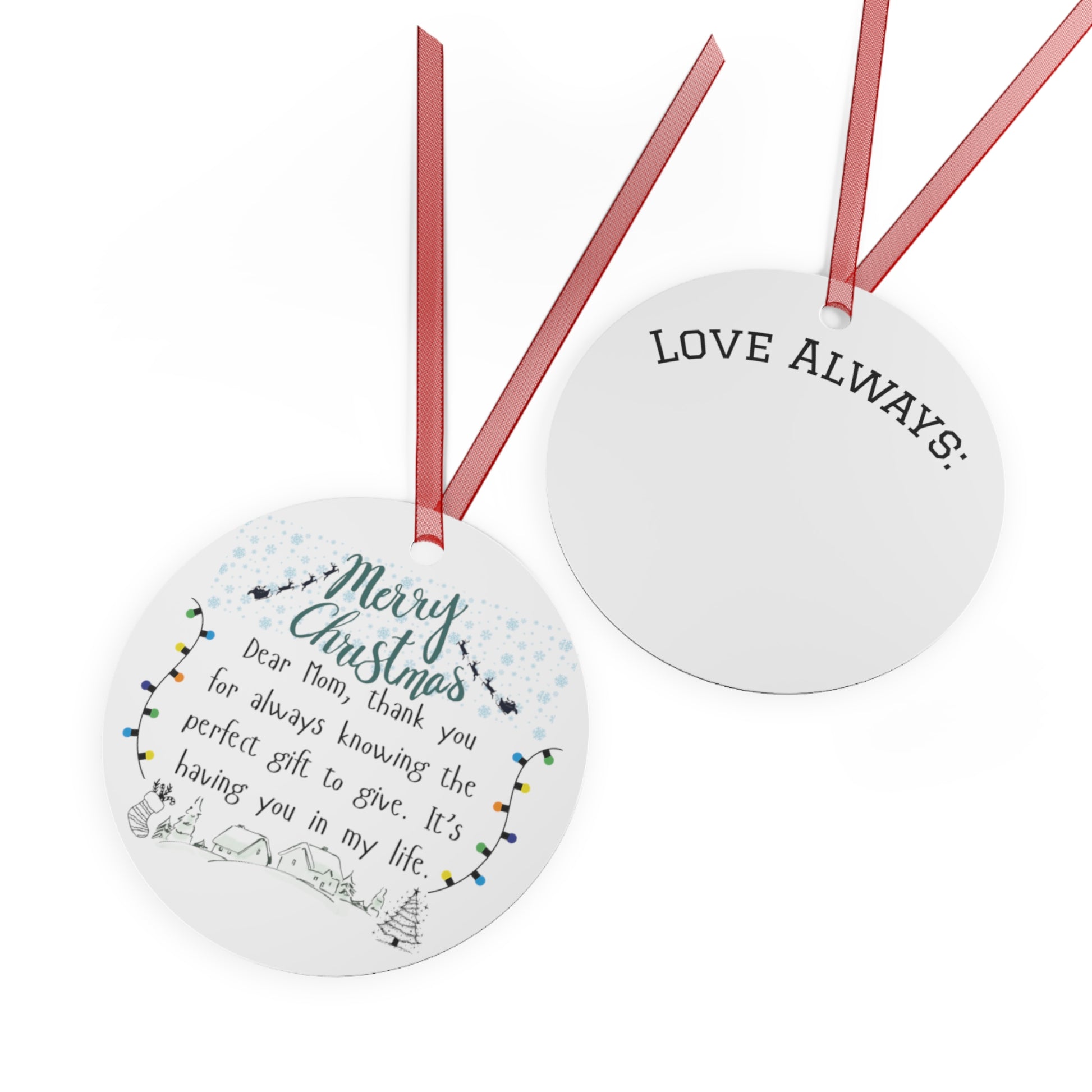 Merry Christmas Metal Ornament for Mom - Personalized Holiday Bell Decoration