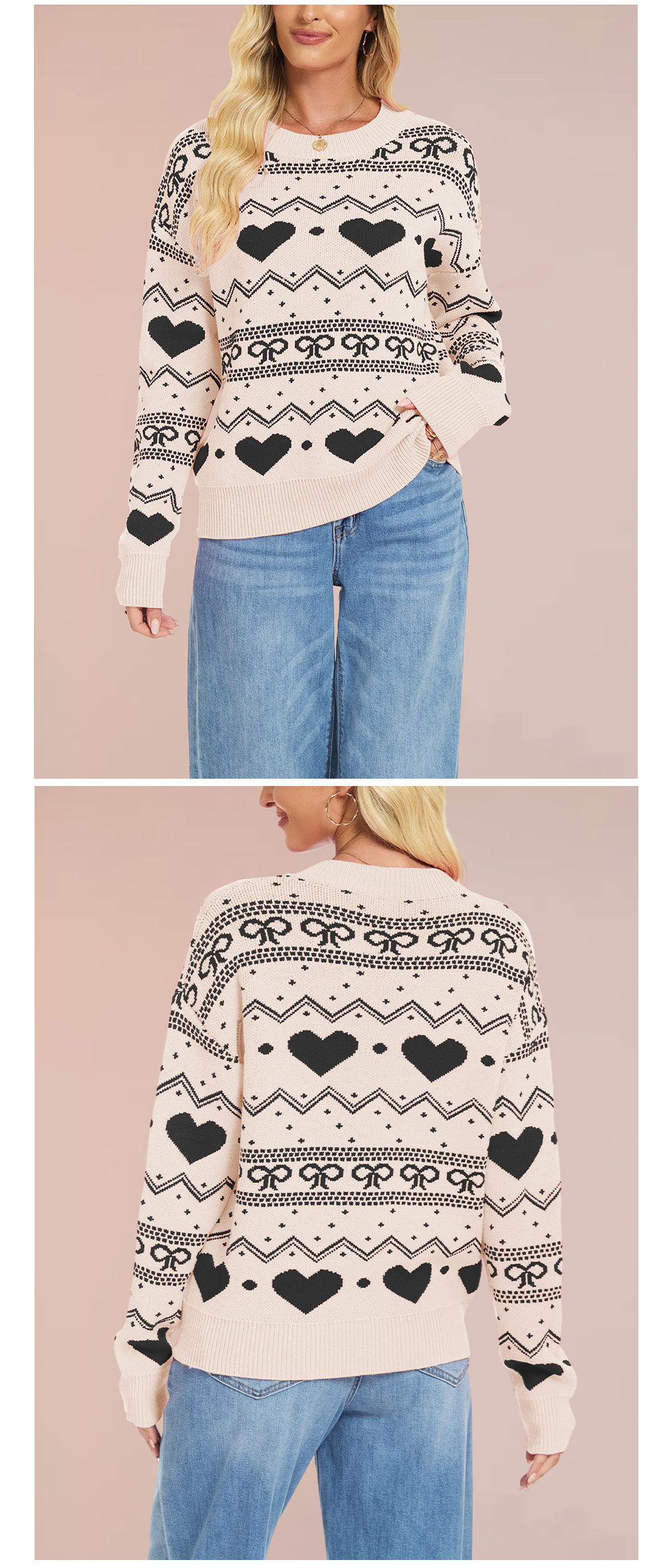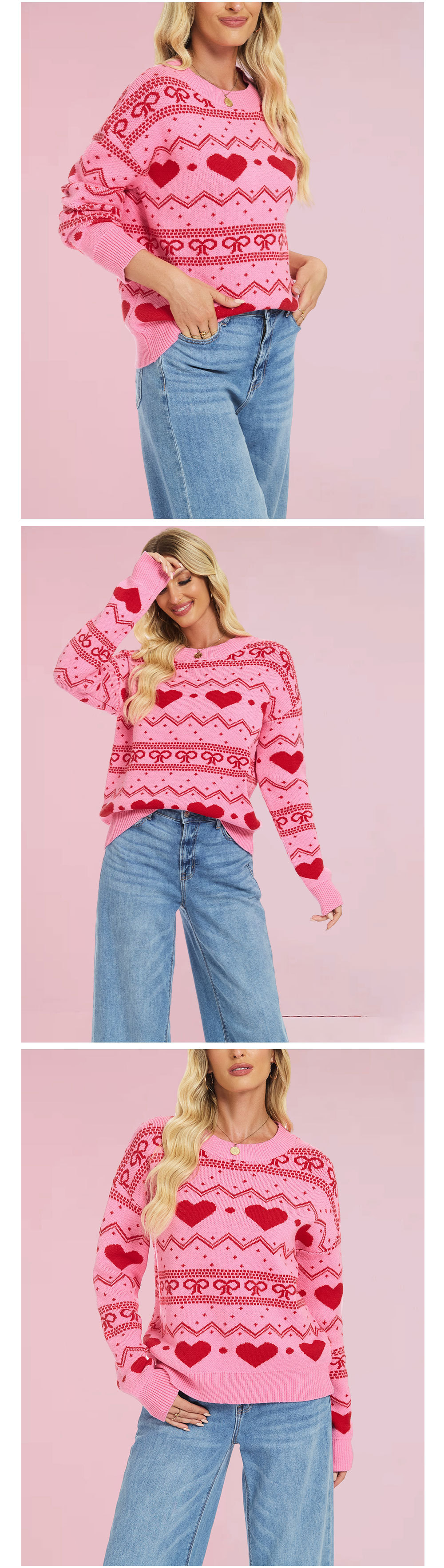 Valentine's Day knitted women's casual long sleeved love pullover sweater