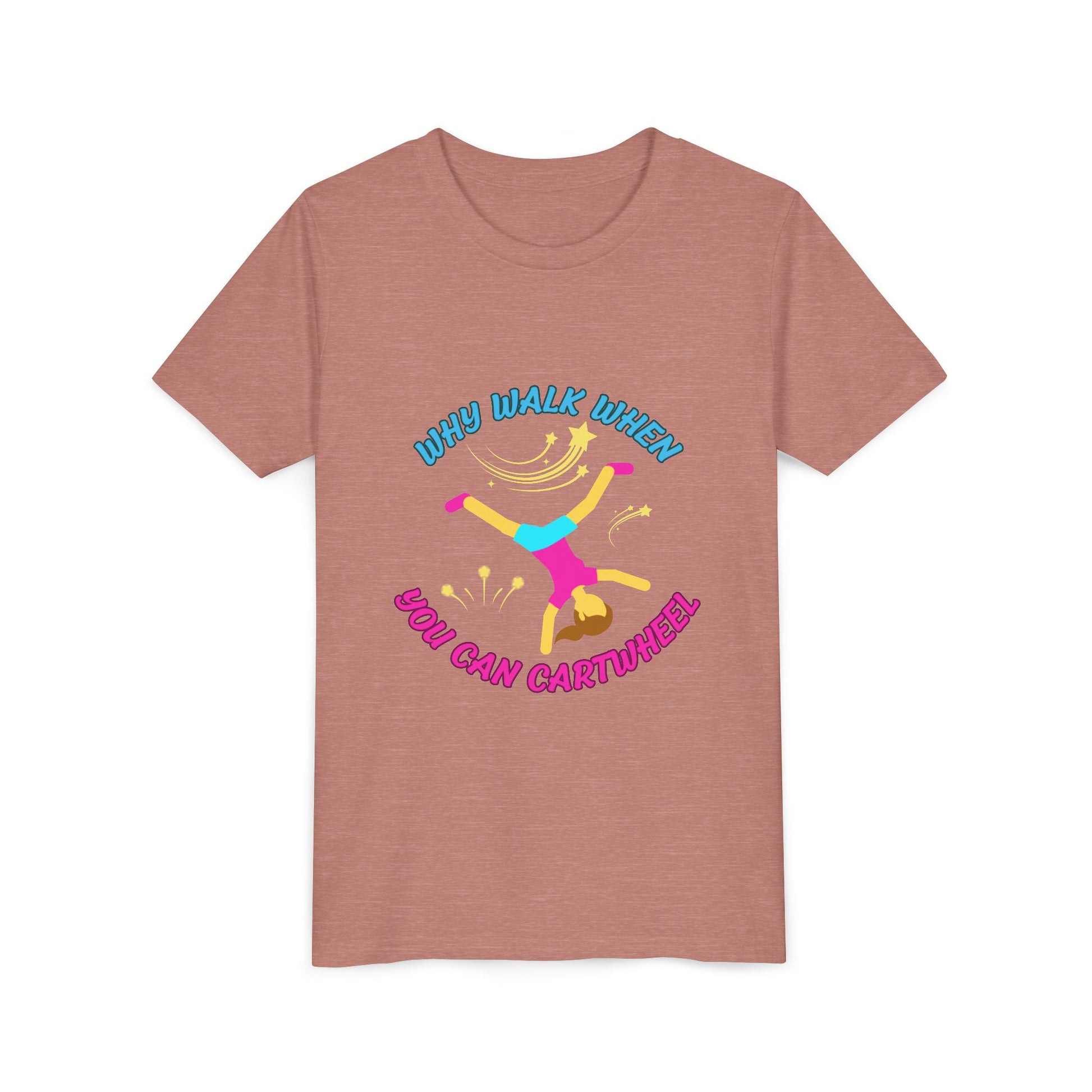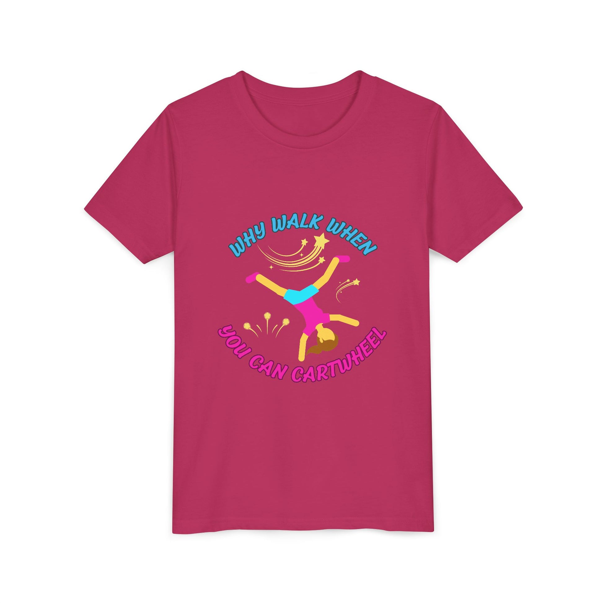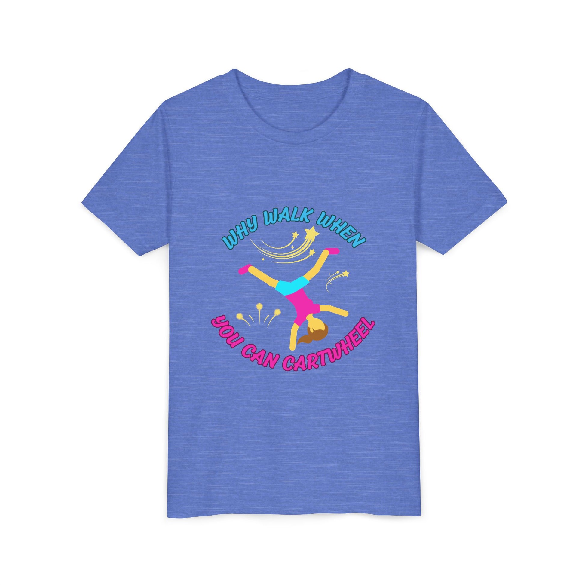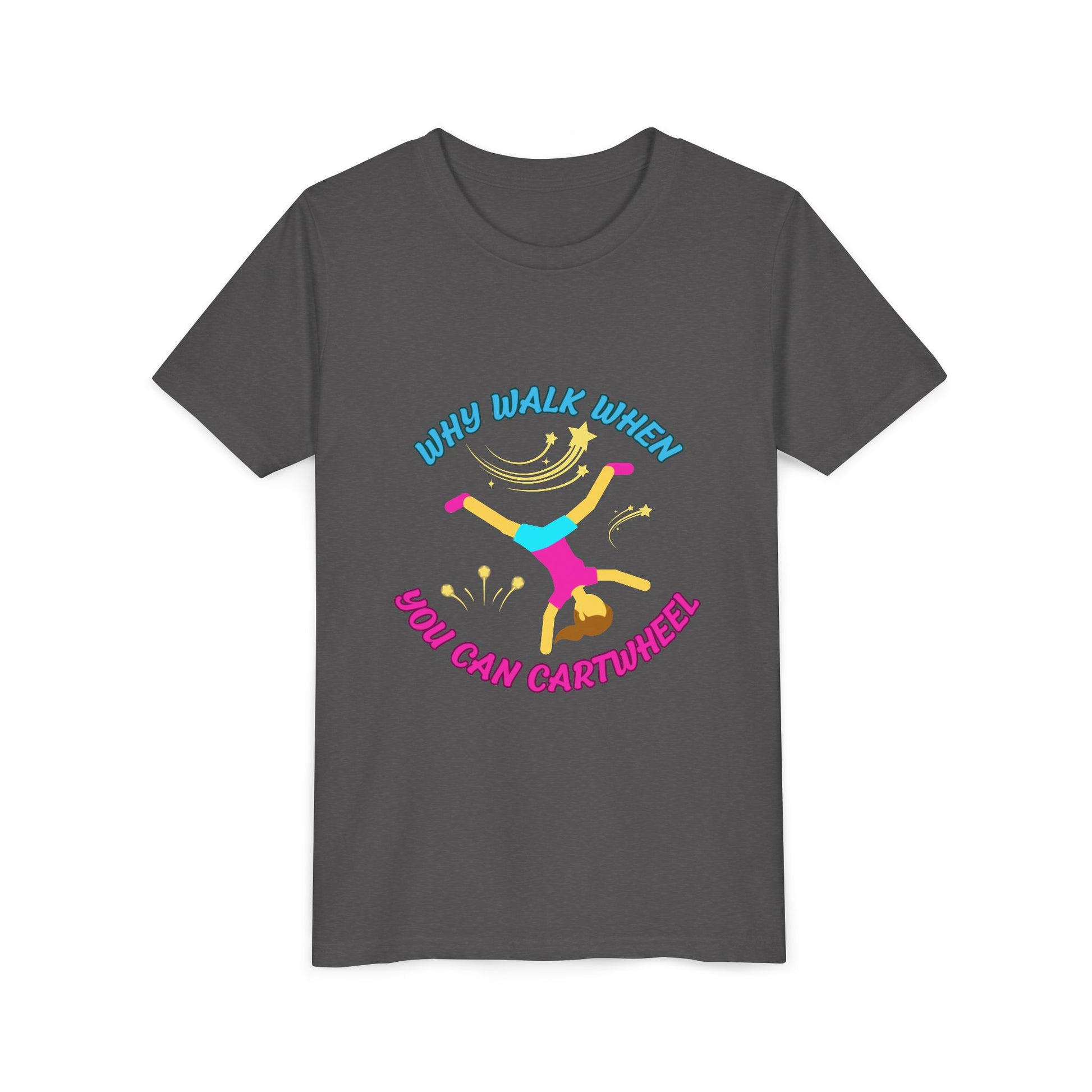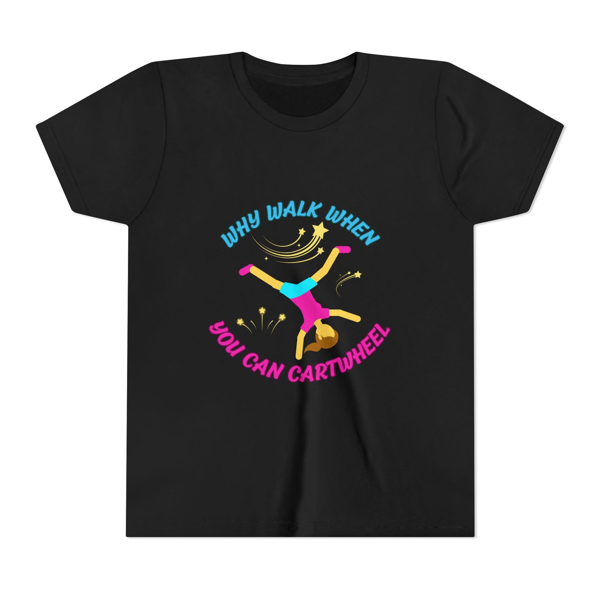 Why Walk When you Can Cartwheel Playful Youth Tee, Kids T-Shirt, Exercise Shirt, Birthday Gift, Gym Apparel, Fun Activity Top